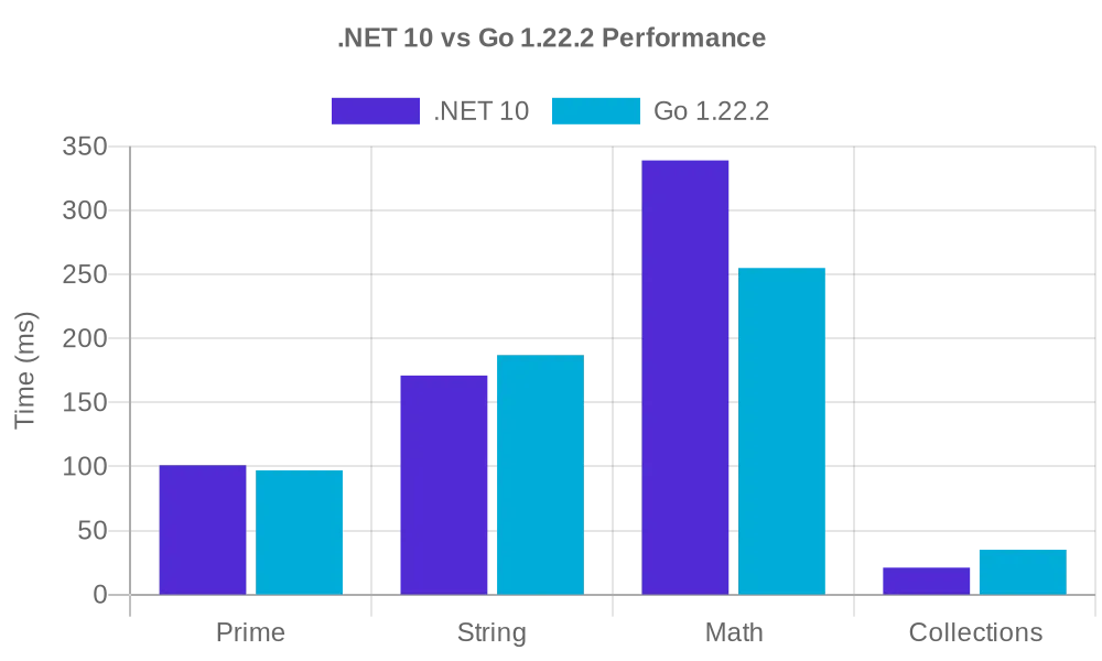 | Benchmark | .NET 10 | Go 1.22 | Winner | Difference |